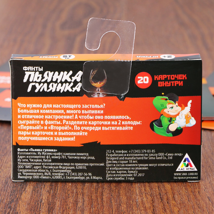 Купить игра для компании "фанты пьянка - гулянка" 20 карт от 80 руб. с доставкой до пункта выдачи в Сасово. Интернет магазин ДекаМаркет. Оплата при получении.